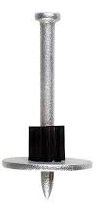 Refers to power-actuated drive pins with a washer, specifically those used with a powder-actuated tool for fastening materials to concrete or steel. These pins are designed to be driven into a base material with high velocity, using the force of the powder charge. The washer helps distribute the load and prevents the pin from sinking too deeply into the material.